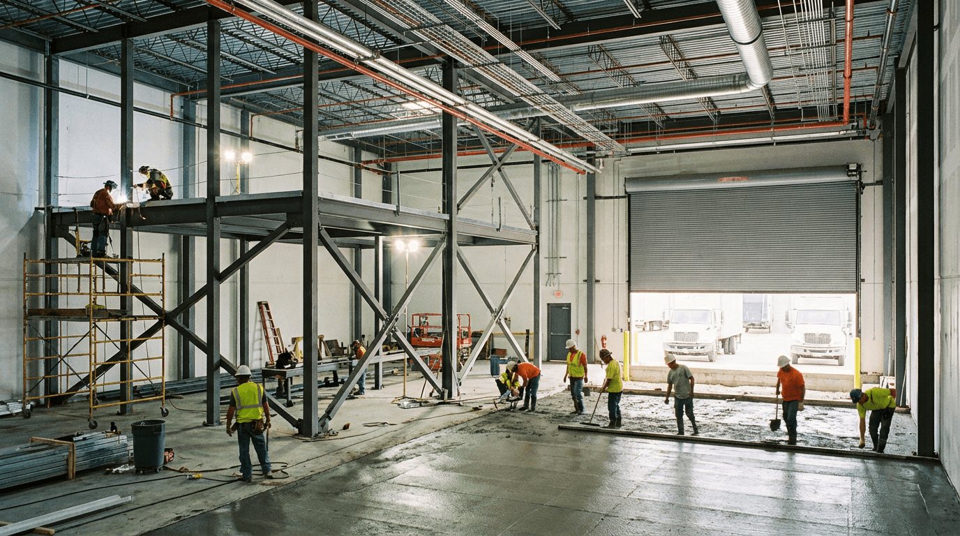 In-house and subcontracted specialties plus concrete, masonry, saw cutting, and installations including dock levelers and coiling doors.